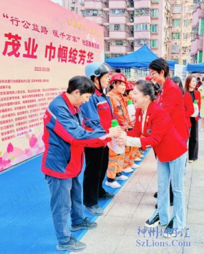 活动特别设置致敬环节,为茂业社区8名女性环卫工人颁发节日礼物。她们被赞誉为“晨曦中的光”与“马路上的玫瑰”,常年以双手守护城市容颜。深圳狮子会领导与社区代表共同为她们送上洗衣液,并邀请全体嘉宾、志愿者与环卫工人合影,记录公益路上的温暖相遇。